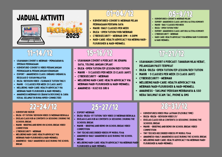 Jadual Aktiviti Bagi Bulan Disember 2025