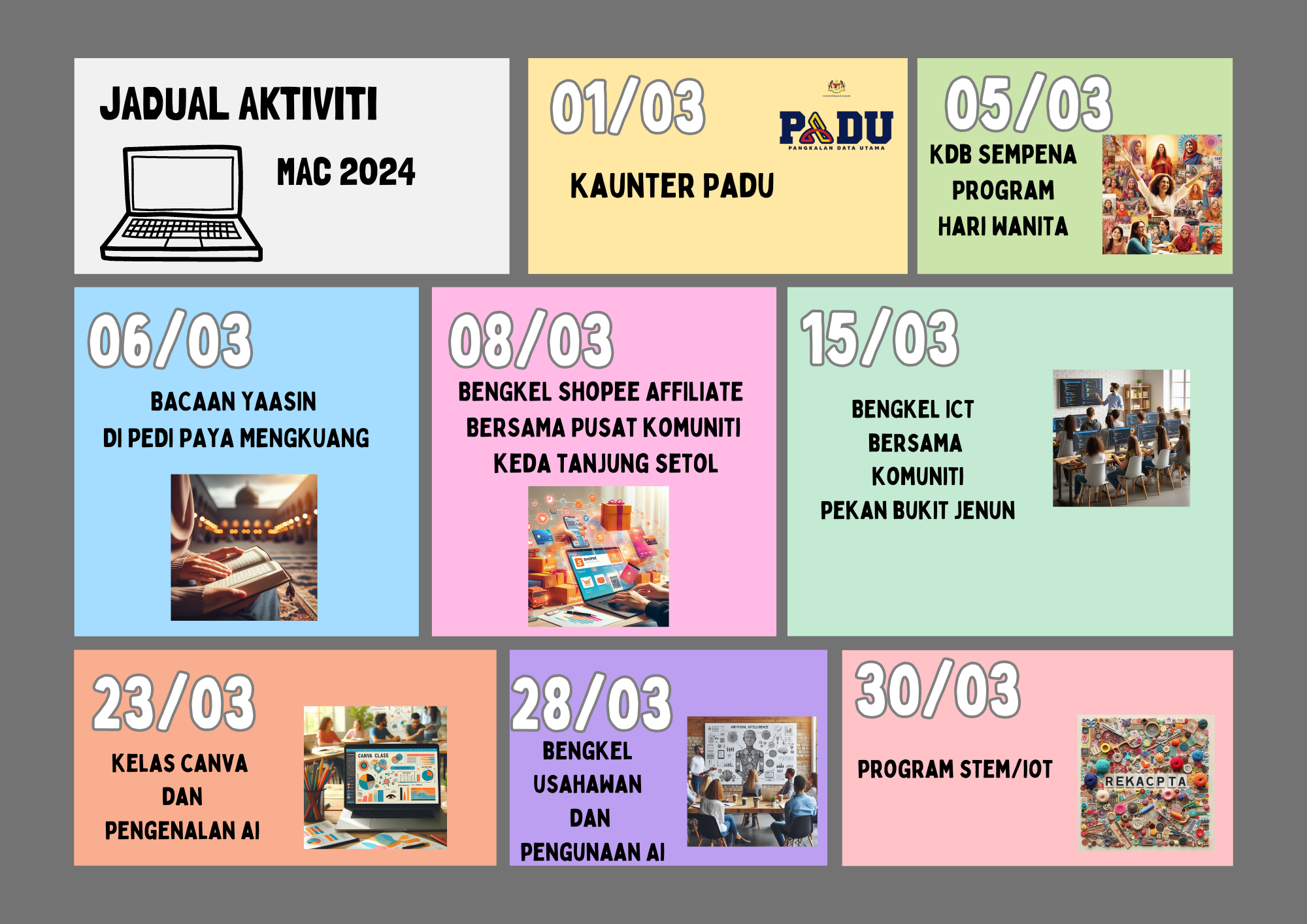 Jadual Aktiviti Bagi Bulan Mac 2024